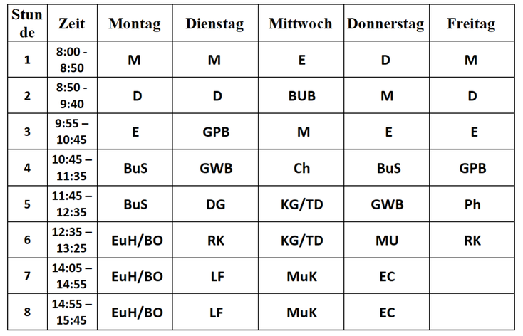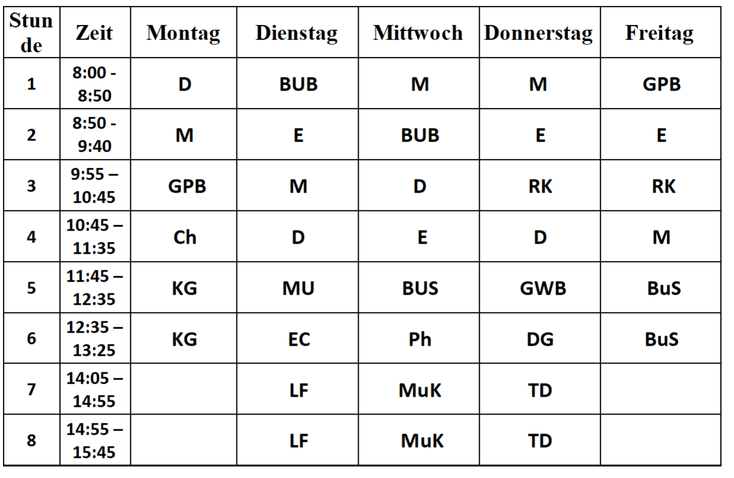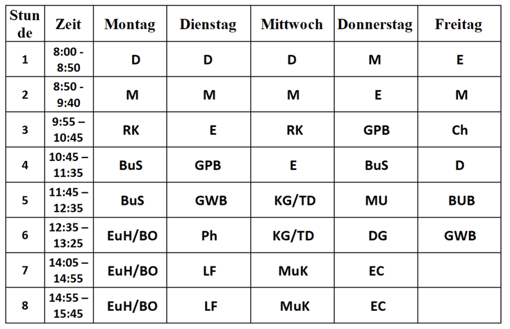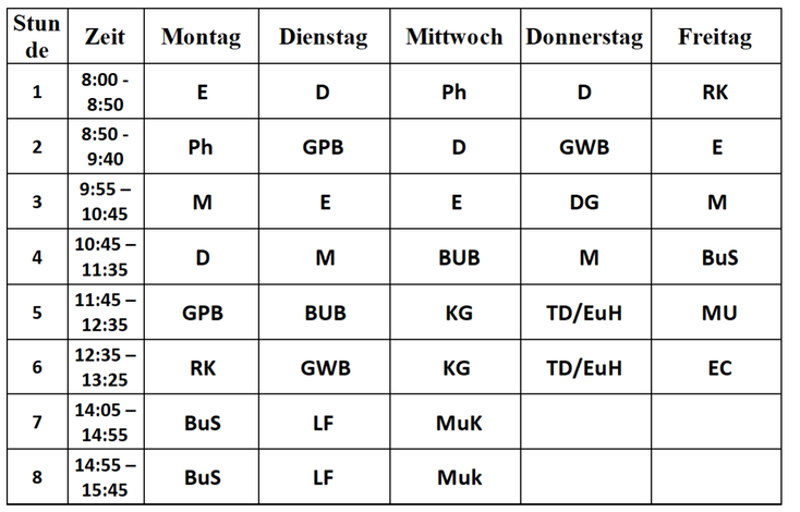 EwG … English with games GWB … Geografie und wirtschaftliche Bildung KuG … Kunst und Gestaltung (früher Bildnerische